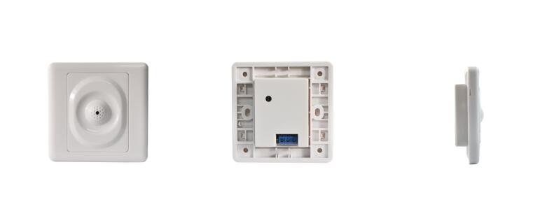 1、采用樹脂材料“86面盒式”設(shè)計(jì).外觀類似聲控感應(yīng)器.